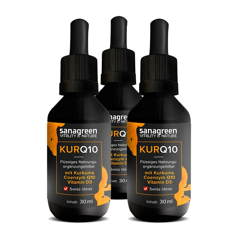 Erhalten Sie alle 3 Monate 3 Fläschchen KURQ10 Sanagreen (30 ml)