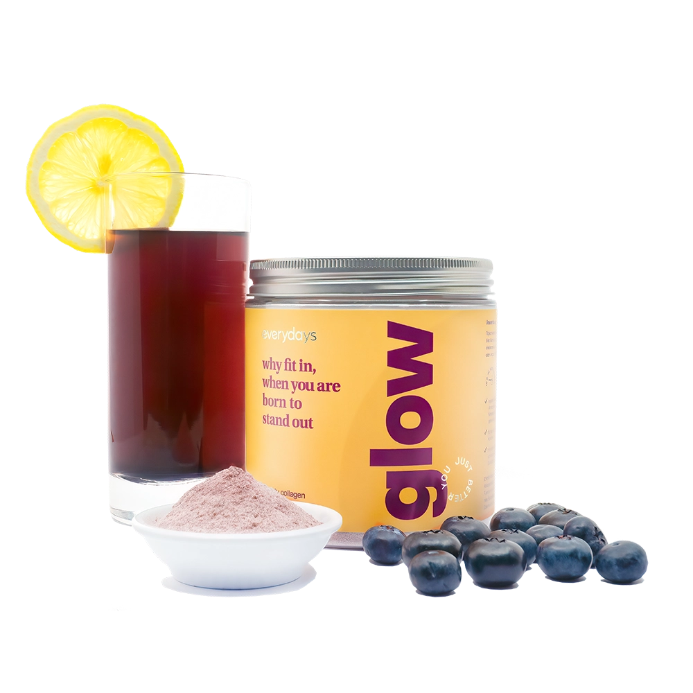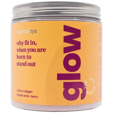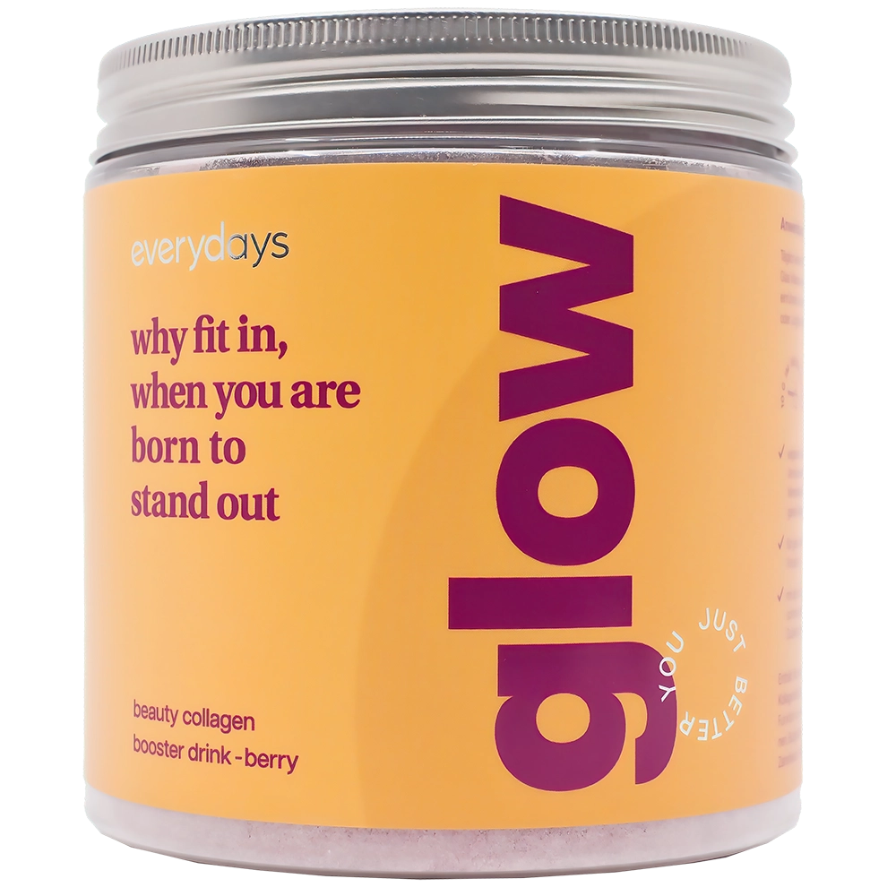 GLOW bietet die Baustoffe, Antioxidantien, Mineralien und Vitamine, welche die Kollagenproduktion und eine schöne, gesunde Haut unterstützen.
