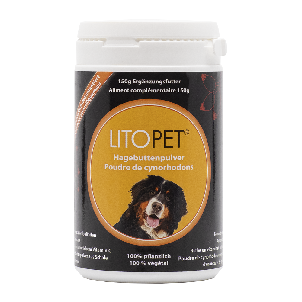 Ergänzungsfuttermittel für Kleintiere, insbesondere Hunde. LitoVet® ist ein 100% natürliches Futtermittel auf der Basis von sorgfältig ausgewählten Hagebutten der Sorte Rosa Canina Lito®.